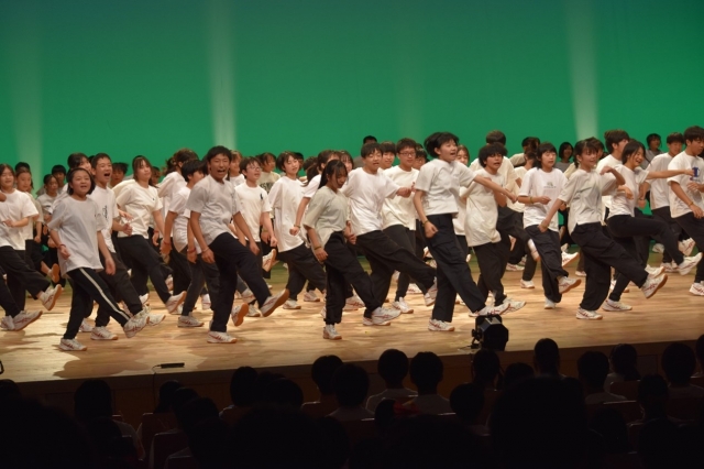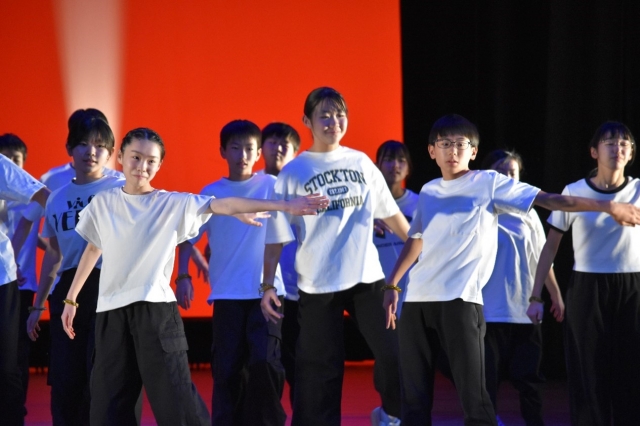 中等部1年生は入学後、夏休み前までに姿勢、発声、影絵での表現等を学びました。表現発表会では、夏休み以降に練習を重ねたダンスを発表しました。