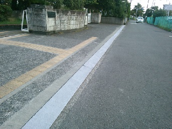 事務室施設担当が正門前段差プレートの滑り止め加工をしました。雨の日(特に中等部生)の自転車転倒・事故を防ぎます。
