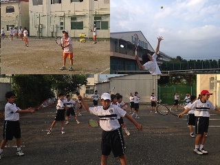テニス部を紹介します。今年はたくさんの中等部1年生が入部し、テニスコートは活気に満ちあふれています。