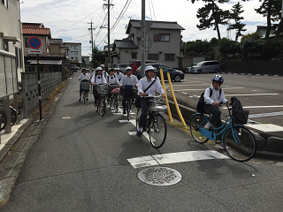 2時間目で一斉にテストが終了したため、学校近くのT字路(瀬織戸神社東側)は下校する自転車通学の生徒で混雑しました。