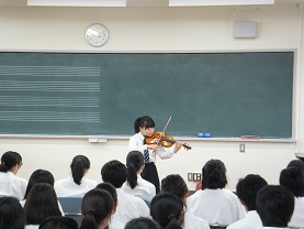 昨日、芸術科音楽専攻生による『第1回校内演奏会』が行われました。第1回目は、ヴァイオリン、クラリネット、フルート専攻の生徒が演奏しました。校内演奏会は毎月1回開催されますが、次は7月9日(木)に開催予定です。
