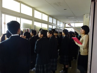 迷路のような校内を担任の先生について回りました。南高ならではの特別教室があり、不思議そうな表情を浮かべる生徒もいました。