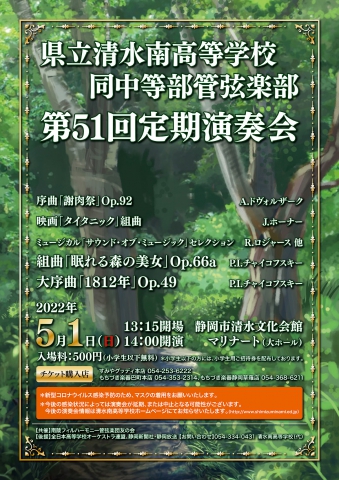 管弦楽部では、令和4年5月1日(日)に第51回定期演奏会を開催します。今年度もコロナ禍で活動の制限を余儀なくされましたが、1年間の活動の集大成として精一杯の演奏をお届けしたいと考えております。